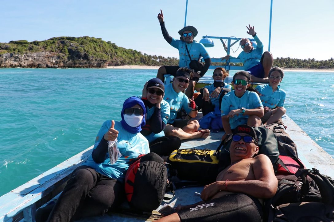 Berlayar dari Pantai Boa menuju Pulau Ndana. Ombak yang tinggi tidak menghalangi semangat peserta Jelajah Rote untuk menuju Ndana. Foto: Aditia P Warman