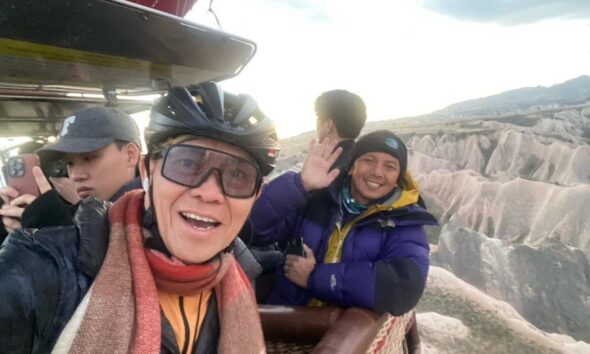 Setelah gagal pada sehari sebelumnya, kami akhirnya terbang menggunakan balon raksasa pada Jumat (24/10/2023) pagi. Sensasinya sungguh luar biasa. Dari ketinggian kurang lebih 1.500 meter, kami melihat Kota Cappadocia dengan hamparan bukit vulkanik yang indah dengan jelas seraya menikmati matahari terbit. Pukul 06.20, pengelola kegiatan balon udara raksasa menjemput peserta di penginapan masing-masing menggunakan mobil … Lanjutkan membaca Catatan Royke Lumowa (28): Akhirnya Terbangi Balon Raksasa di Cappadocia