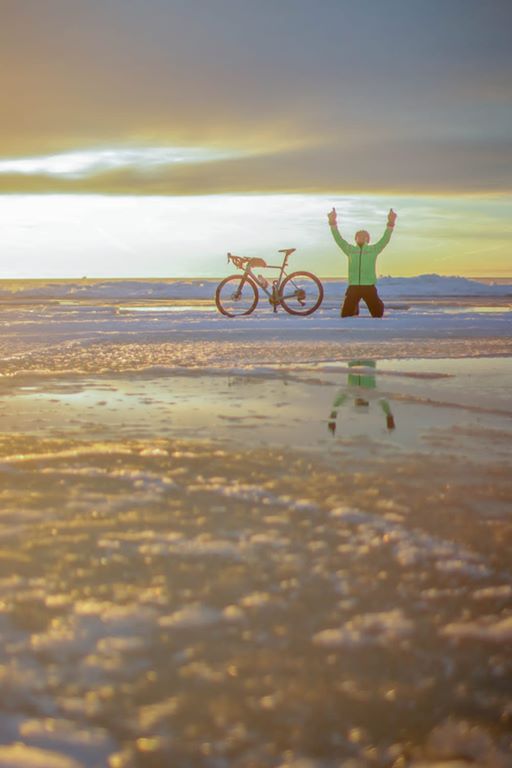 Begitu berada di lokasi, saya seolah masih tidak percaya dengan kenyataan itu. Saya pun mencoba berjalan di atas hamparan laut yang membeku tersebut sejauh kurang lebih 25 meter ke tengah dengan menentang sepeda. Kapan lagi berjalan di laut yang membeku. Saya mengabadikan diri dalam berbagai gaya. Tempat yang saya lewati telah mengeras seperti batu.