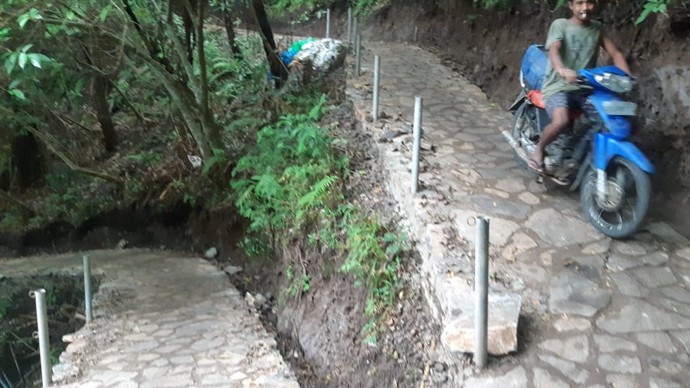 Jalan yang disemen ditata dengan kontur menanjak. Dinding tanah pun dipangkas untuk melebarkan badan jalan, dan tanpa dibangun penahan. Jika hujan lebat, dinding tanah itu berpotensi longsor. Bahkan, jalan yang bersemen pun bakal dipenuhi lumut sehingga menjadi licin sehingga bisa mengganggu perjalanan para pejalan kaki.