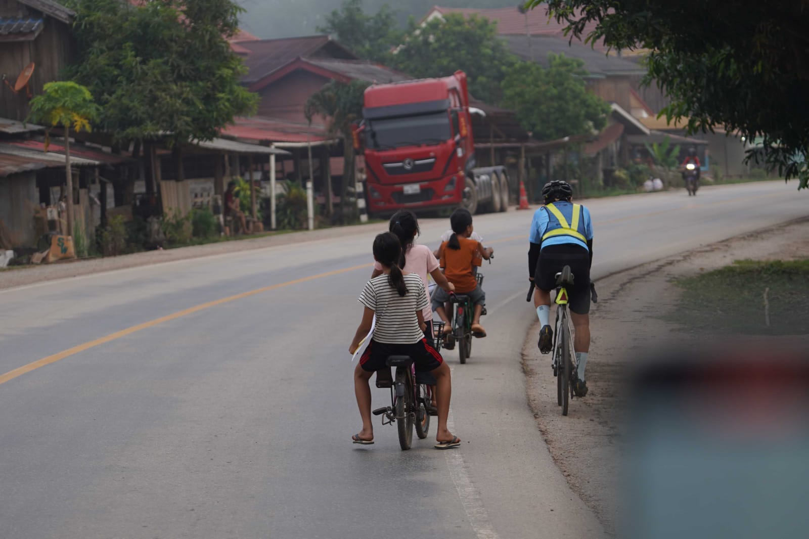 Sementara pada perjalanan menuju utara Laos tidak banyak dilewati pesepeda jarak jauh. Dari pemantauan saya di Komunitas Strava, jalur ini hanya dilewati sekitar 10 pesepeda dalam setahun terakhir. Artinya, masuk kategori sepi. Jadi, kalau anak-anak Laos menyapa para pesepeda dengan sebutan bye-bye menunjukkan keramahan. Kesahajaan.