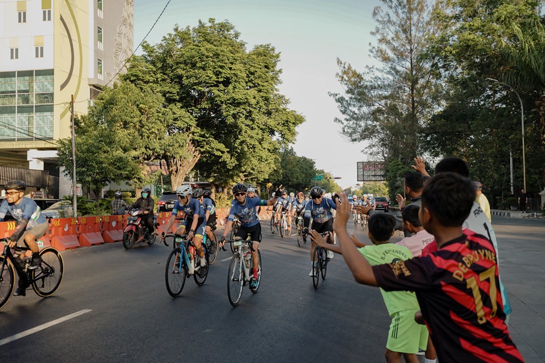 Hujan deras tak menjadi hambatan untuk gowes menuju finis di Yogyakarta, Minggu (18/5/2025) sore. Foto: Arsip Jelajah Bike