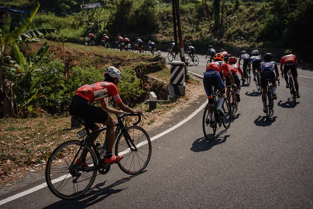 Para pembalap sedang kejar-kejaran di jalan tanjakan. Foto: dokumentasi jelajah sport