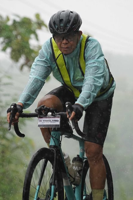 Bersepeda di tengah hujan saat perjalanan di utara Thailand menuju perbatasan dengan Laos. Foto: dokumentasi Royke Lumowa