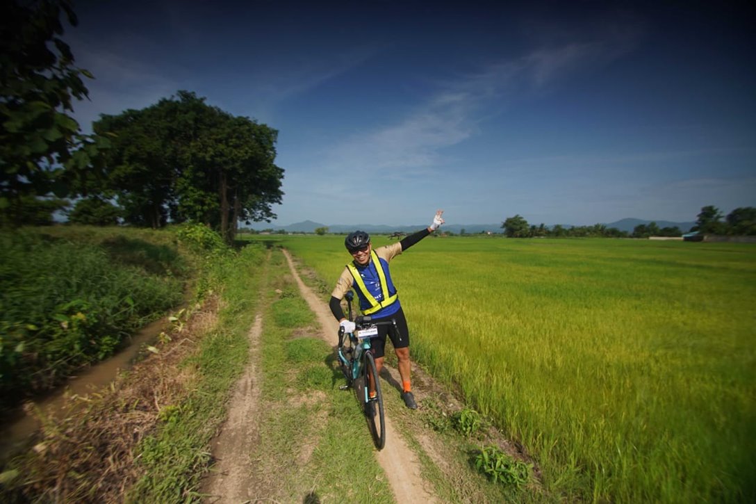 Tahun ini saya melakukan seorang diri. Di tepi Sungai Mekong pula. Sungguh terharu dan menggetarkan jiwa! Saya tetap menjadikan momentum ini untuk memompa sekaligus membakar semangat sehingga terus laju mengayuh sepeda hingga di Paris sesuai rencana.