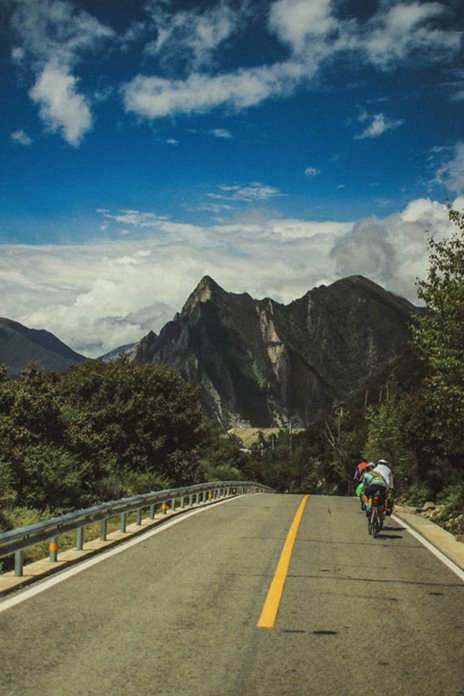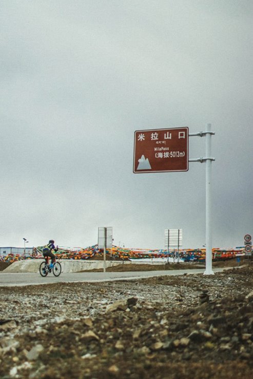 Selepas makan siang, saya tetap bersepeda. Tanjakan yang memanjang di depan mata tidak menghalangi niat saya untuk mencapai di puncak Gunung Mila. Sekitar pukul 18.10, saya akhirnya tiba di puncak. Total jarak dari Gongbo Gyamda hingga di puncak Gunung Mila sejauh 124 kilometer.