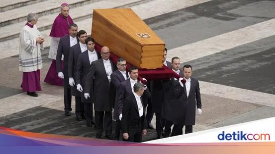 Peti jenazah Paus Emeritus Benediktus XVI diarak menuju Lapangan Basilika Santo Petrus, Vatikan, Kamis (5/1/2023). Foto: detik.com