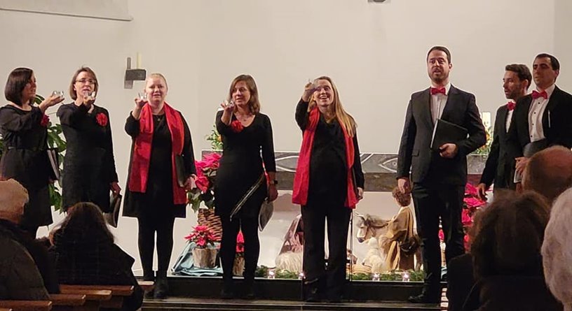 Sejumlah anak muda di Paroki Eiken, Swiss menggelar konser Voix Celestes. Konser ini untuk memaknai pesta Santo Silvester yang dirayakan setiap tanggal 31 Desember. Foto: Dokumen pribadi