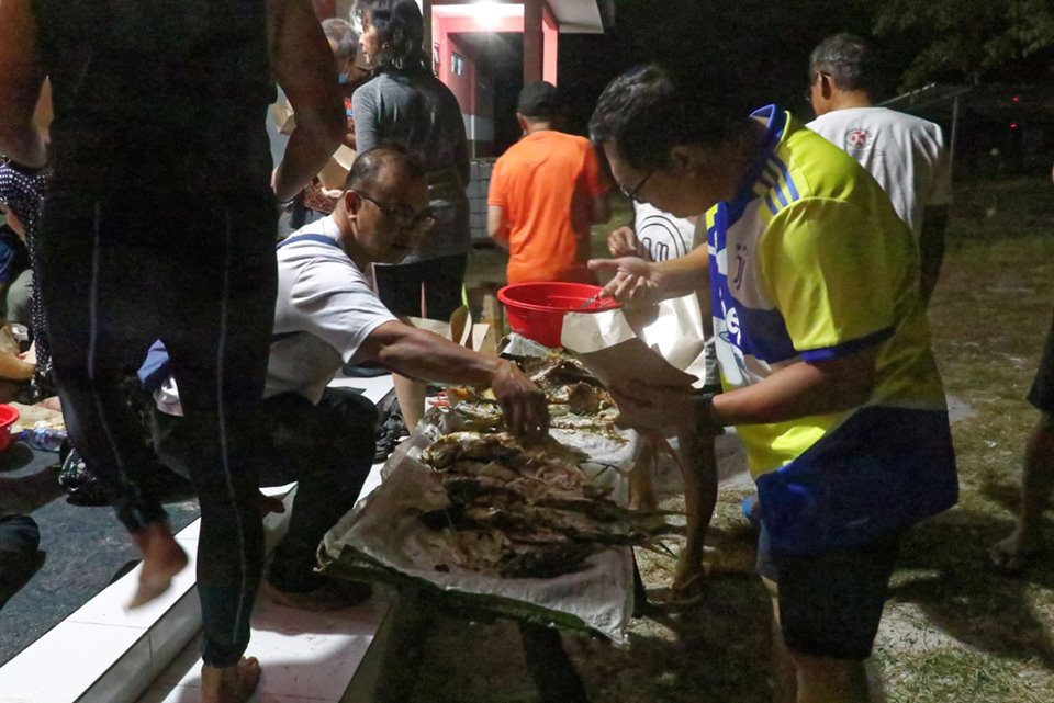 Peserta Jelajah Rote sedang menikmati ikan panggang. Foto: Aditia P Warman