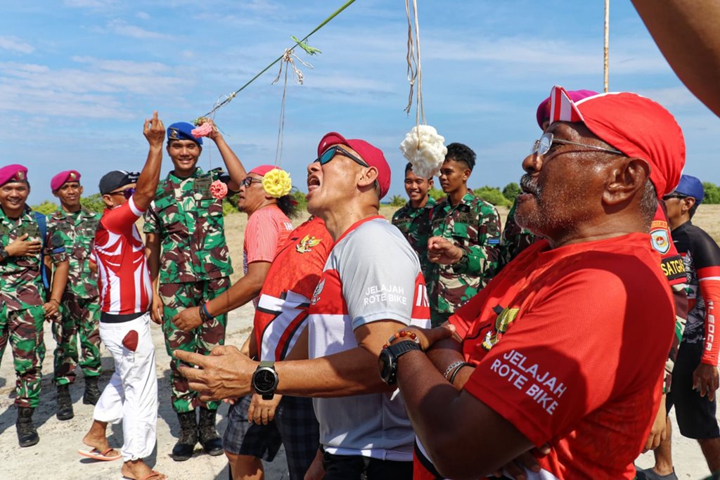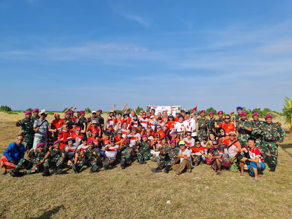 Peserta Jelajah Rote dan prajurit marinir foto bersama usai merayakan HUT ke-77 Kemerdekaan RI di Pulau Ndana. Foto: Aditia P Warman