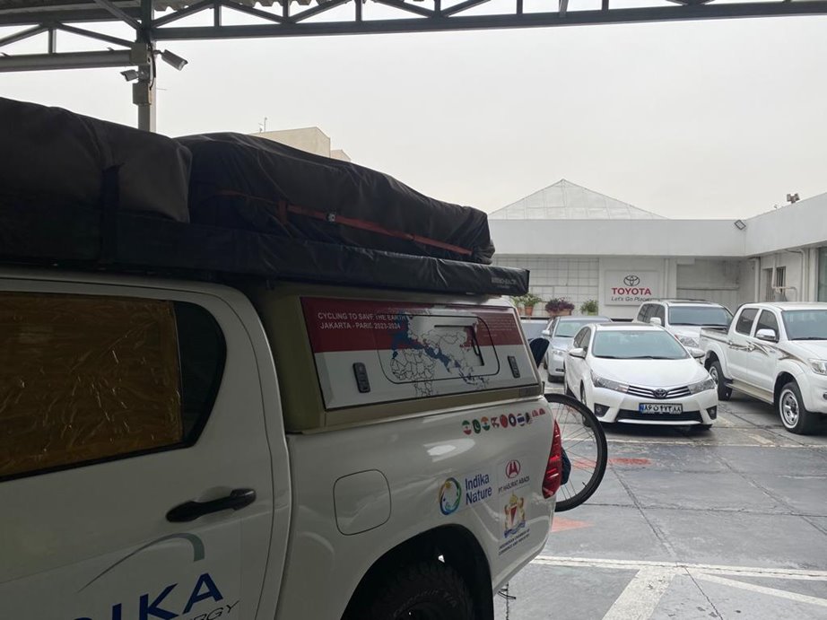 My crew and I arrived in Tehran on 2 November 2023, at around 20:30 (8:30 p.m.) local time. That night, we stayed at the Hotel Iriano. The vehicle parking lot is located on the ground floor. However, the entrance to the parking lot is quite narrow and low, making it difficult for our car, a Toyota Hilux double cabin vehicle, to enter.