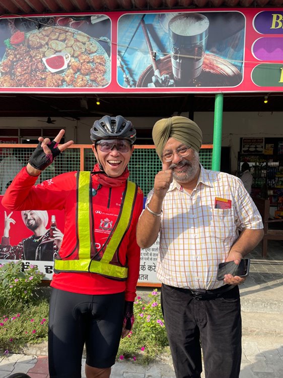 Seorang warga asal Amristar, India, begitu antusias melihat saya bersepeda. Dia banyak bertanya tentang perjalanan saya. Bahkan, dia rela membayari kami makan pada Sabtu (7/10/2023) siang. Foto: Arsip Royke Lumowa.