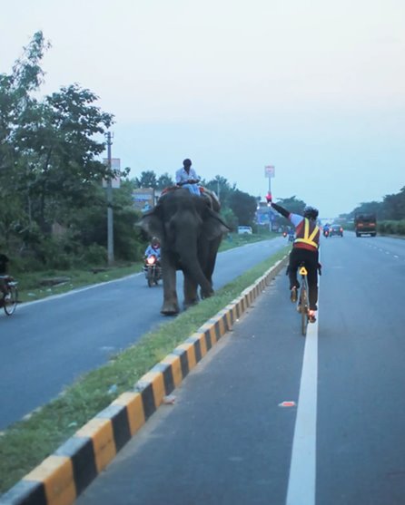 Bertemu gajah di tengah jalan saat gowes di India. Foto: Arsip Royke Lumowa